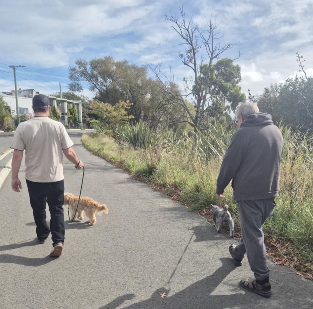 Family dog walking.