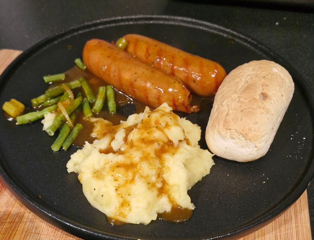 Homemade devilled sausages and mash definitely suited the weather and hit the spot.