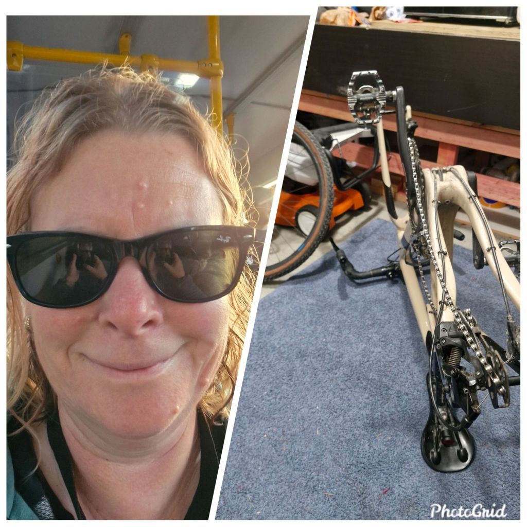 When I saw his bike upside down, I remembered it hadn’t been reassembled after he picked me up after my work dinner on Wednesday.