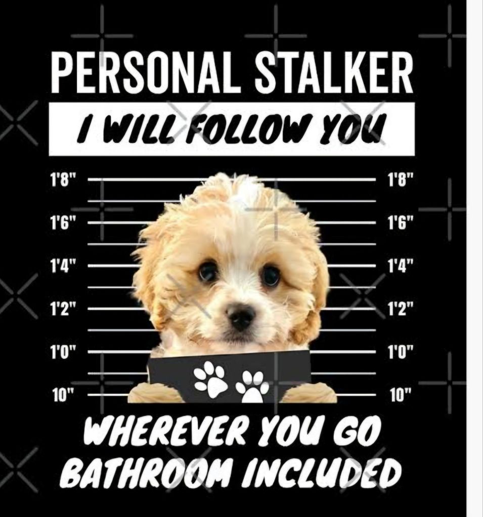 Thanks to whoever created this one. I can honestly say it is relatable and so funny when Mike is in the main bathroom, and I’m in the ensuite, and Affro sits in the hallway halfway between the two rooms.