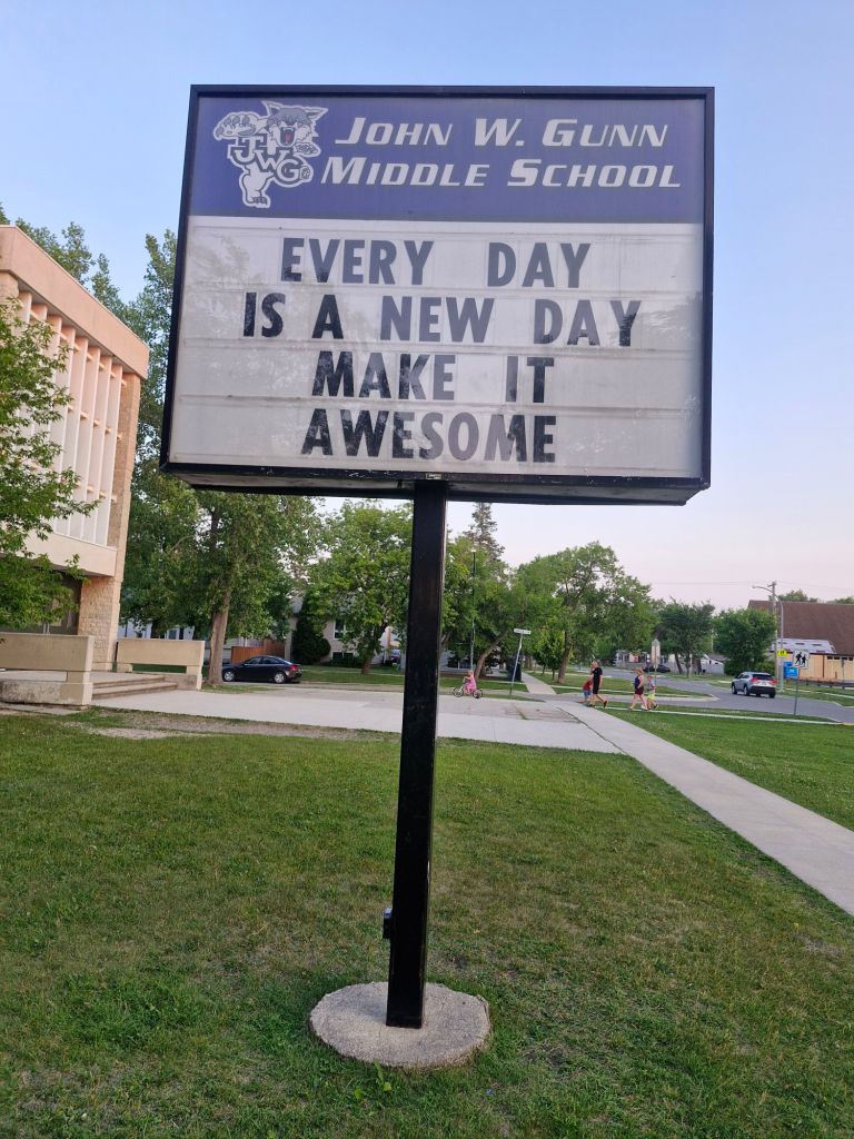 After dinner, we took Mike’s sisters dog for a walk and found this sign at Mike’s old school.